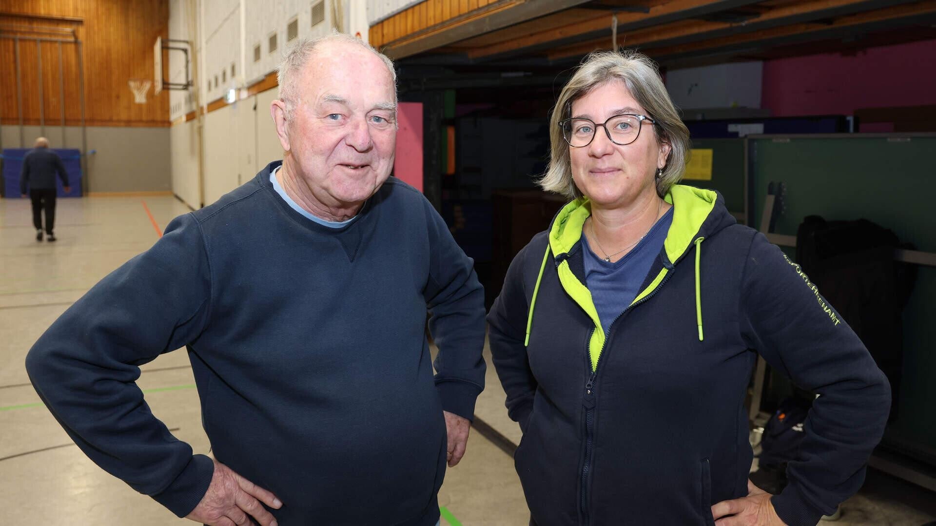 Lutz, der seinen Familiennamen nicht in der Zeitung lesen will, ist mit 83 Jahren heute der älteste Teilnehmer. „Ich bin überall der Älteste“, schmunzelt er. „Aber Bewegung ist doch immer gut“, erklärt er im Vorbeigehen und fällt dann auch wieder in einen leichten „Trab“. Früher habe er Fußball gespielt, sei Trommler im Fanfarenkorps gewesen und sei geritten, erzählt er weiter. Das geht heute nicht mehr, aber ein bisschen geht immer noch, und da kommt er gerne zur Ski- und Funktionsgymnastik des Zollsportvereins. Eine vorherige Anmeldung braucht es nicht, einfach da sein, dienstags um 18 Uhr in der Halle im Klevchen und einfach mal reinschnuppern.